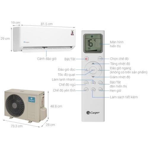 - Máy lạnh 1 chiều tích hợp chế độ Eco tiết kiệm điện hiệu quả.